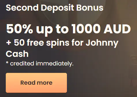 The second deposit bonus rewards regular players and provides a certain number of free spins for JohnnyCash.