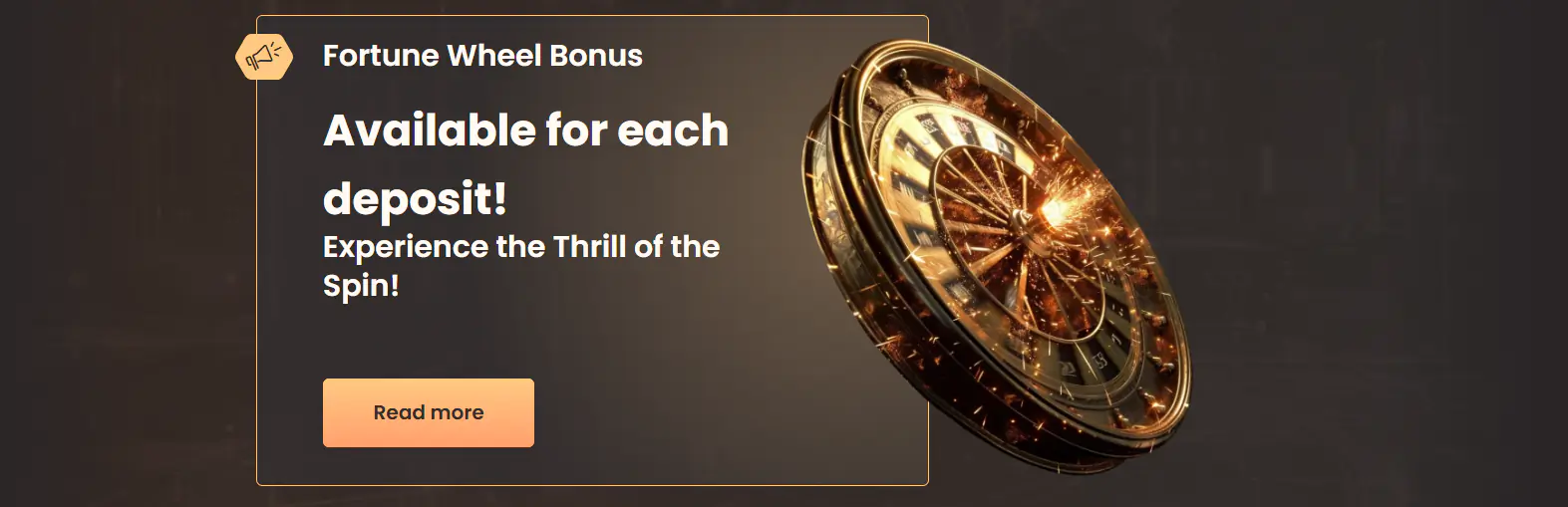 Each time you make a deposit, you earn a spin on the Fortune Wheel, where you can win Free Spins, Cashback, or other Bonus Offers.
